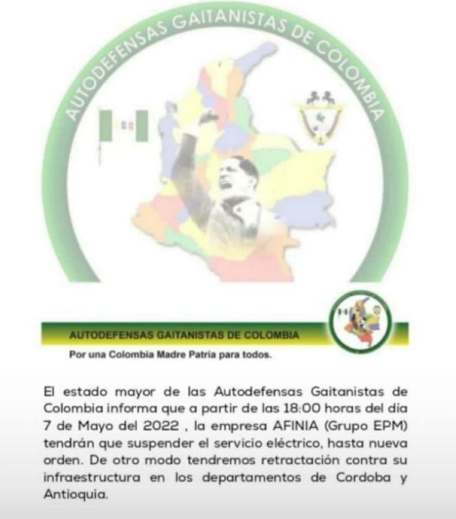Desde 2021, el presidente Iván Duque, afirmó que el «final de las AGC había llegado», sin embargo, la población civil se ha visto sometida desde este jueves 5 de mayo al control del grupo irregular.