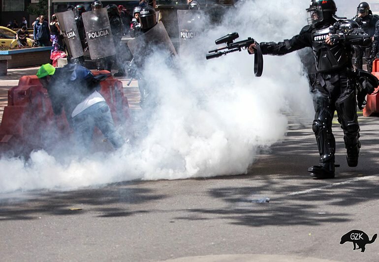 «WOLA recomienda firmemente que se suspenda la venta de materiales antidisturbios a Colombia hasta que se demuestre una adhesión más estricta a los procedimientos adecuados para la desescalada y el uso de la fuerza letal y no letal.»