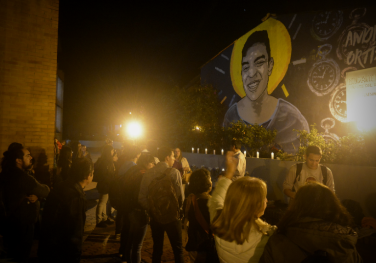 Al final de la jornada tuvimos la oportunidad de realizar una velatón frente al mural que ha sido pintado en memoria de Andrés Camilo en la Faculta de Ciencias Económicas. Este acto conmemorativo tuvo el acompañamiento musical del grupo distrital Canto Vital, quienes interpretan música latinoamericana y tienen gran sensibilidad en temas sociales.
